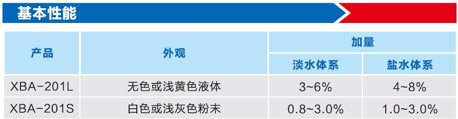 • XBA- 201实际加量需根据温度、盐浓度、固井要求调整。